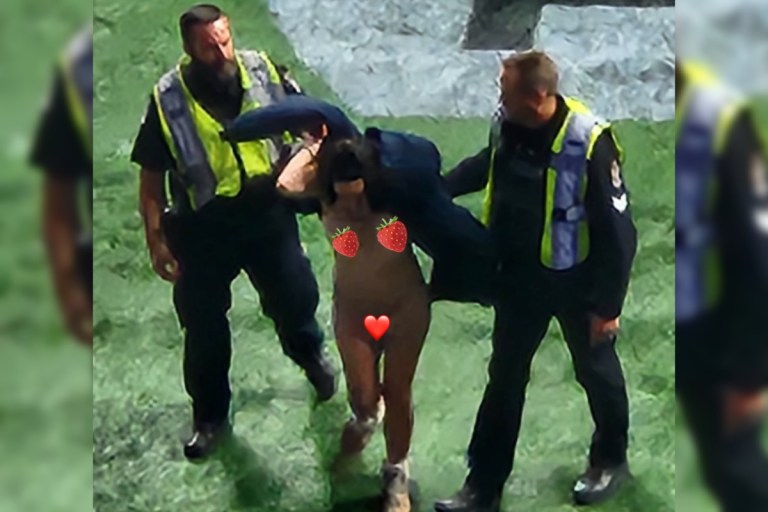 Fully Naked Woman Runs Onto Field During Grey Cup Final , The cfl's grey cup was interrupted by a female streaker on sunday.